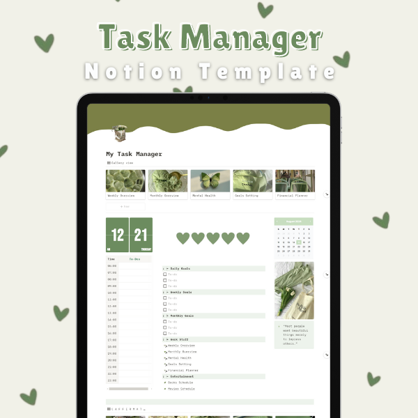 Notion Task Manager Template With a Green Aesthetic